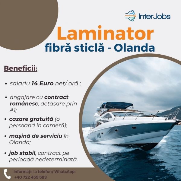 Angajam laminator fibra sticla cu experienta, productie barci Olanda