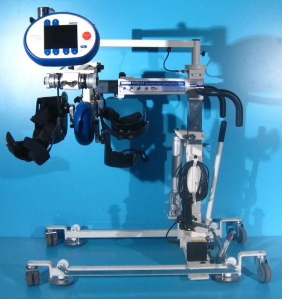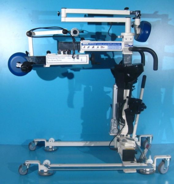 Pacientii pot folosi acest aparat intr-un mod pasiv, asistat de un motor, fie pe un pat de spital sau pe un scaun pentru terapie.