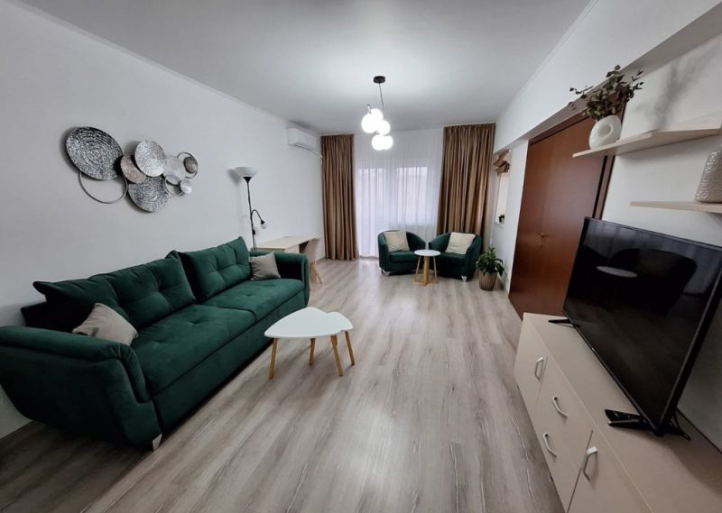 Dispune de un living luminos echipat cu o canapea extensibila, TV, AC, dormitor cu pat matrimonial, dressing incapator, 1 baie.