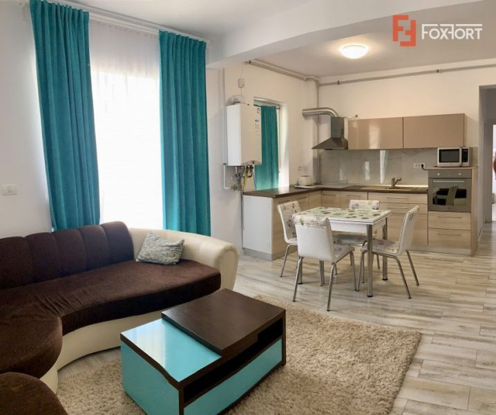 FOXFORT Imobiliare propune spre inchiriere un apartament cu 2 camere, semidecomandat, situat in localitatea Giroc, zona Centrala, aflat la parter intr-un bloc cu regim de inaltime pe Parter + 4 Etaje. Anul constructiei 2020. Suprafata utila de 48 mp. Apartamentul este mobilat si utilat complet. Incalzirea este realizata prin intermediul centralei proprii prin pardoseala, structurat astfel: