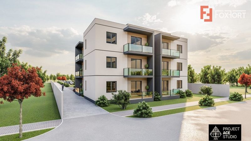FOXFORT Imobiliare propune de vanzare un apartament cu 2 camere, open space, situat in localitatea Giroc, zona Sud, aflat la parter intr-un bloc cu regim de inaltime pe Parter + 2 Etaje. Anul constructiei 2023, structura beton, material zidarie caramida. Suprafata utila de 48 mp + balcon de 5 mp + gradina.