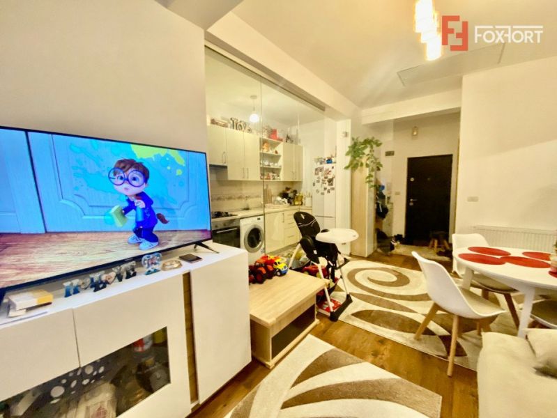 FOXFORT Imobiliare propune spre vanzare un apartament cu 2 camere, semidecomandat, situat in Giroc, aflat la etajul 2 intr-un bloc cu 2 etaje, an constructie 2016, structura beton, suprafata utila de 43 mp, fiind structurat astfel: hol, bucatarie, living, dormitor, baie, balcon.