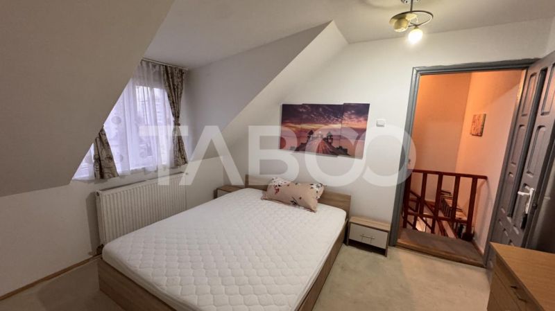 TABOO Imobiliare propune un apartament de inchiriat cu 3 camere, pe doua nivele, semidecomandat, situat in localitatea Sibiu, zona Mihai Viteazul, aflat la Mansarda intr-un imobil tip bloc cu regim de inaltime pe Parter + 4 Etaje + Mansarda; anul constructiei 2000, structura beton. Suprafata utila de 96 mp.