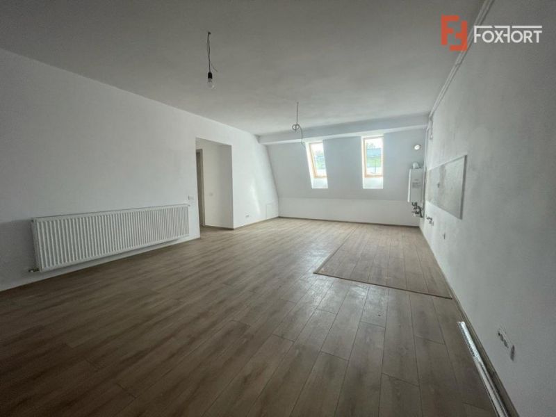 FOXFORT Imobiliare va propune spre vanzare un apartament cu 3 camere, semidecomandat, situat in Ghiroda langa padure, aflat la mansarda inalta intr-un bloc cu 1 etaje+mansarda, an constructie 2021, structura beton, suprafata utila de 69,3 mp, fiind structurat astfel: hol spatios, living cu bucatarie open space, hol intermediar, dormitor cu terasa, dormitor, baie cu cada.