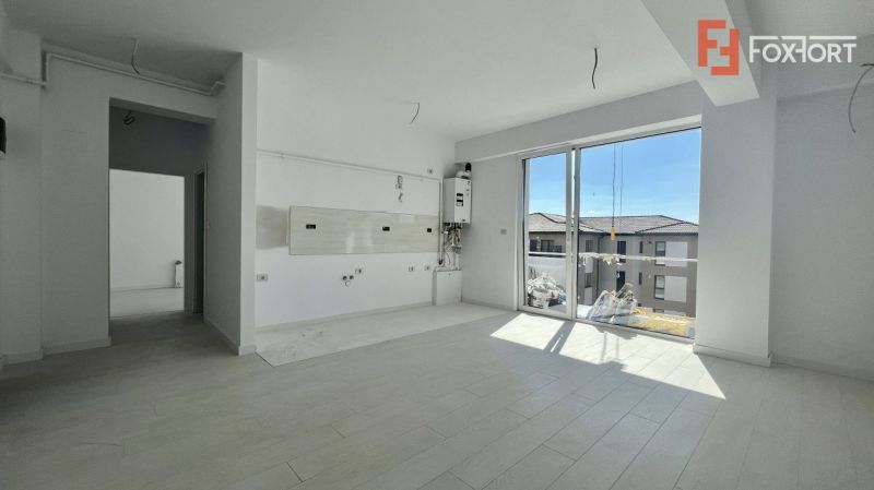 FOXFORT Imobiliare propune de vanzare un apartament cu 2 camere, decomandat, situat in localitatea Giroc, zona ESO, aflat la etajul 4 intr-un bloc cu regim de inaltime pe Parter + 5 Etaje. Anul constructiei 2022, structura beton, material zidarie caramida. Suprafata utila de 50 mp + balcon de 9 mp. Apartamentul este structurat astfel: