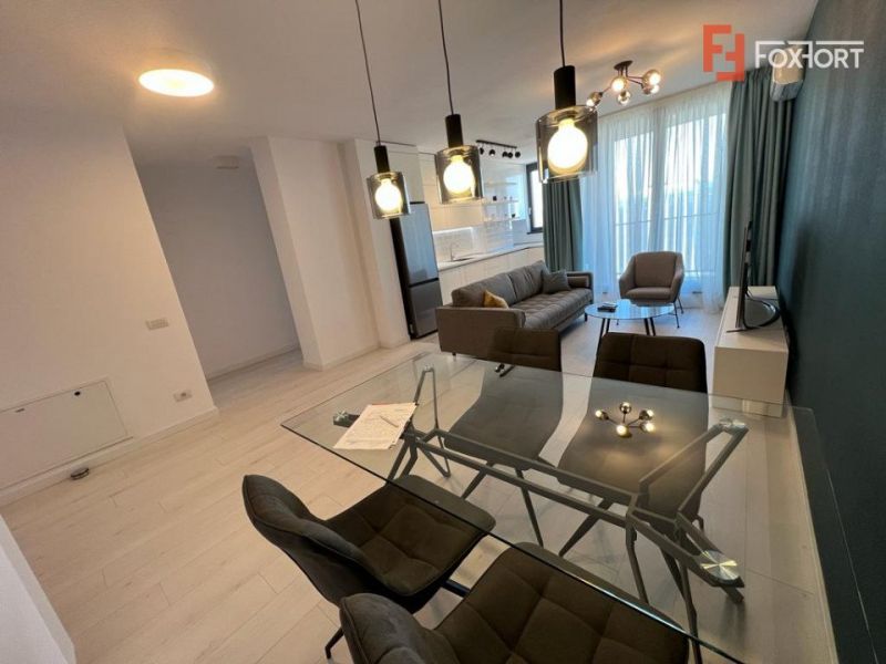 FOXFORT Imobiliare propune spre inchiriere un apartament cu 2 camere, semidecomandat, situat in localitatea Timisoara, zona Take Ionescu, aflat la etajul 9 intr-un bloc cu regim de inaltime Parter + 20 Etaje. Anul constructiei 2021, structura beton. Suprafata utila de 57 mp + balcon de 4,9 mp.