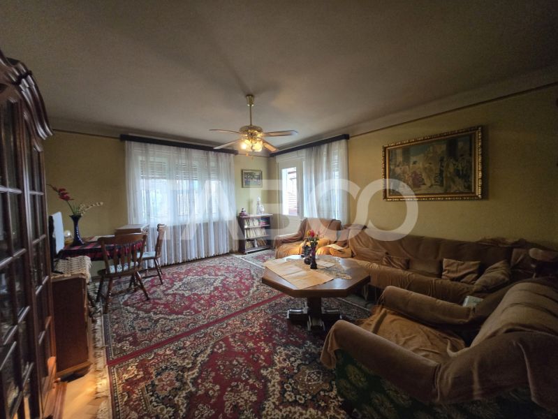 TABOO Imobiliare propune un apartament de vanzare cu 4 camere, decomandat, situat in localitatea Sibiu, pe strada Octavian Goga in zona Sub Arini, aflat la etajul 2 intr-un imobil tip casa cu regim de inaltime pe Parter + 2 Etaje; Anul constructiei 1970, structura caramida. Suprafata utila de 129 mp + balcon de 7 mp, curte si gradina de 92 mp.