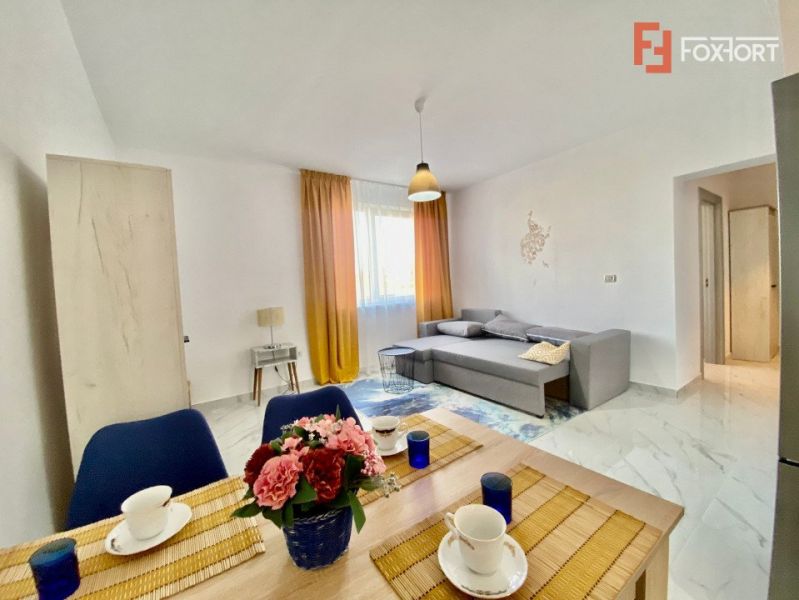 FOXFORT Imobiliare propune spre vanzare un apartament cu 2 camere, semidecomandat, situat in Giroc, aflat la etajul P intr-un bloc cu 2 etaje, an constructie 2020, structura beton, suprafata utila de 41 mp, fiind structurat astfel:hol, dormitor, living, baie, bucatarie.