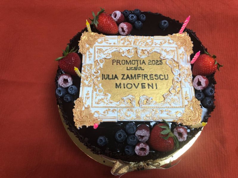 Cina festivă: aperitiv-gustare, fel de bază, salată, băuturi răcoritoare/apă minerală, cafea, tort festiv personalizat cu artificii.
