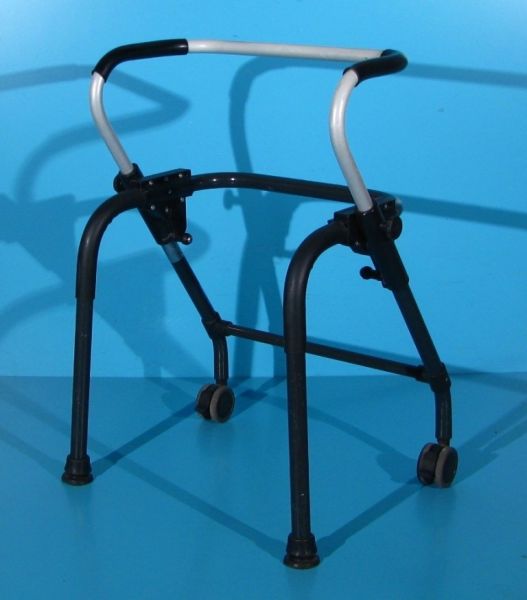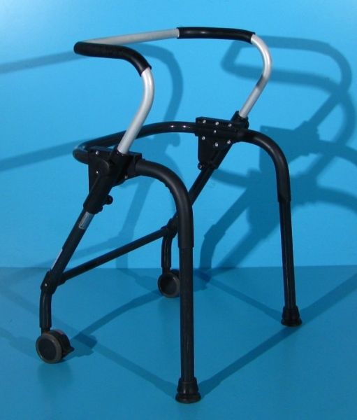 Cele doua roti frontale prevazute cu frana de picior faciliteaza deplasarea mersului, iar doua picioare cu varfuri de cauciuc care nu marchează podeaua, asigura stabilitatea mersului.
