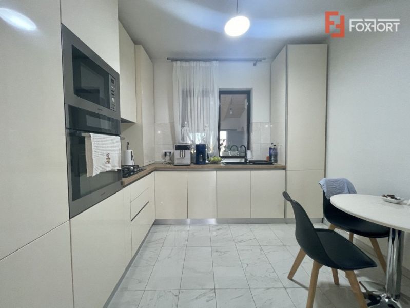 - Parter: hol, living, baie cu dus, spatiu depozitare sub scara, bucatarie inchisa, terasa inchisa cu bucatarie complet mobilata si utilata;