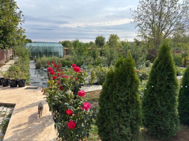 Suprafata totala de teren 996mp cu cultura de zmeuri remontanti,diversi pomi fructiferi,trandafiri dulceata,coacazi , muri,solar 24 mp ,sisteme de irigare prin picatura,gradina cu pergole transafiri cataratori ,tuia ,artar japonez si alte plante/ arbusti decorativi.
