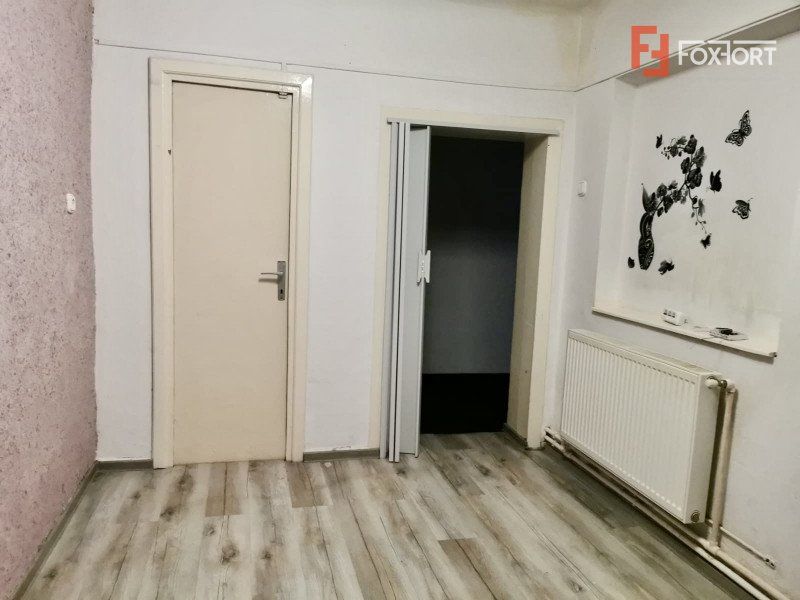 Spatiul dispune de 5 camere, partial compartimentat, este prevazuta cu 2 grupuri sanitare. Spatiul comercial are o suprafata utila de 90 mp si un teren de 363 mp. Spatiul permite adaptarea la diverse activitati comerciale sau servicii: birouri, cabinete medicale, avocatura, salon de infrumusetare, etc.