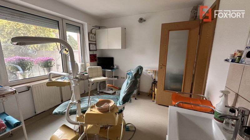 - Parter: hol, 2 camere, baie, 2 bai de seviciu, bucatarie, debara, terasa 12 mp. ( partea de jos a casei este pretabila pentru cabinet dentar cu iesire separata)