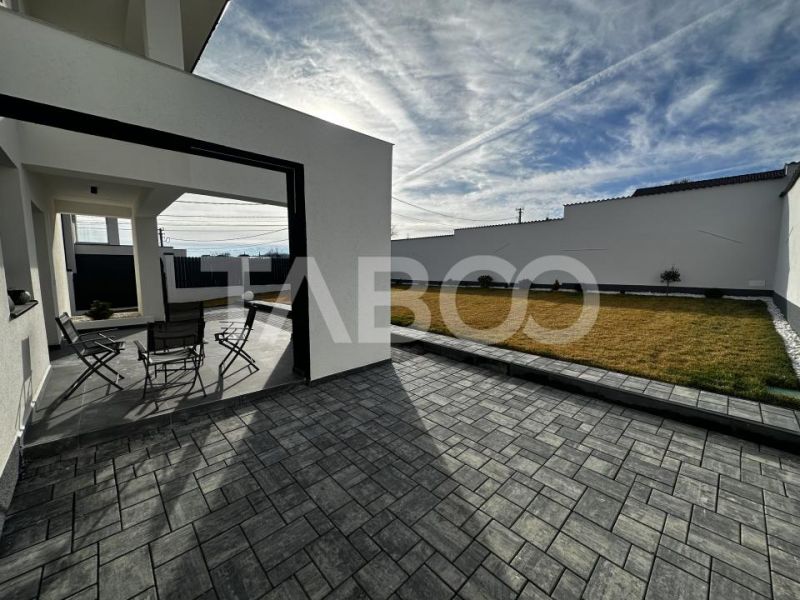 Curtea are 498 mp, cu deschidere de 17 ml, amenajata cu gazon tip rulou si sistem de irigare controlabil de pe telefon. Gardul este din beton, cu profile decorative si banda LED integrata. Exista locuri de parcare atat in curte, cat si in exterior.