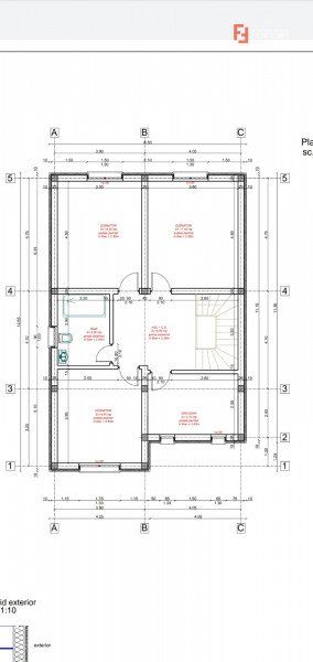 - Etaj: hol, 3 dormitoare, dressing (9mp) baie.