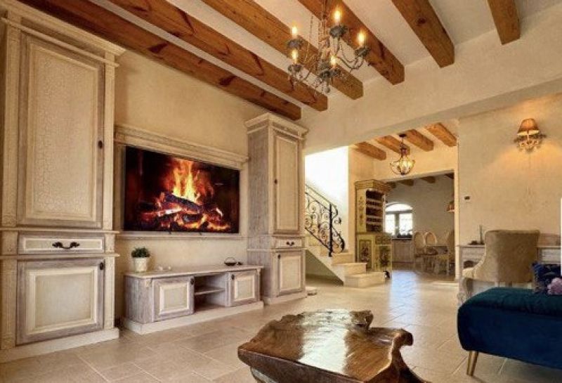 • Mobilier din lemn masiv periat și sculptat, cu elemente pictate manual