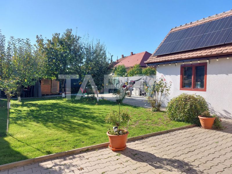Curtea libera de 354 mp este frumos amenajata atat cu zona verde cat si cu pavaj pentru a parca masini. Garajul este spatios si are si spatiu de depozitare. Casa are intimitate deoarece niciun vecin nu are geam in curtea proprietatii. Casa se preteaza si pentru familii cu copii deoarece in zona esta scoala gradinita parc pentru copii si mijloace de transport in comun.