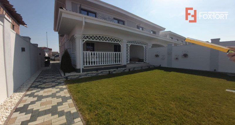 FOXFORT Imobiliare propune spre vanzare casa tip duplex, cu un regim de inaltime P+1E, situata in zona - Muresului, localitatea Dumbravita, avand un numar de 5 camere, cu o suprafata utila de 143 mp si teren 450 mp. Casa a fost construita in anul 2019, structura acesteia fiind din beton, pereti din caramida Porotherm, tamplarie Rehau, casa smart, o poti controla de pe telefon, sitem irigare, piscina cu acoperire, camere video, poarta cu automatizare electrica cu telecomanda sau control telefon, semineu electric.