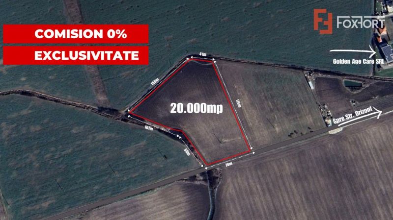 Acest teren de 2 hectare, situat in capatul strazii Orizont, aproape de Caminul de batrani Golden Age Care, beneficiaza de acces direct la drum de pamant (4m latime), cu front stradal de 70m.