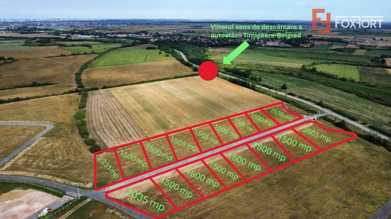 FOXFORT va propunem spre vanzare parcele de teren industrial cu suprafate de 1500 mp, situat in Mosnita Noua, Albina unde va fi viitoarea coborare de pe autostrada Timisoara - Belgrad. Terenul va dispune de utilitati, fiind pregatit pentru dezvoltare. PUZ finalizat cu CF individual pe fiecare parcela.