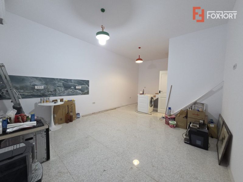 Accesul se face dintr-o curte interioara, are o incapere spatioasa la parter, amenajata atat pentru activitati comerciale, cat si pentru locuit. La parter exista si o baie complet renovata recent. La etaj exista o mansarda renovata, cu lumina naturala si cu un acces usor pe scari.