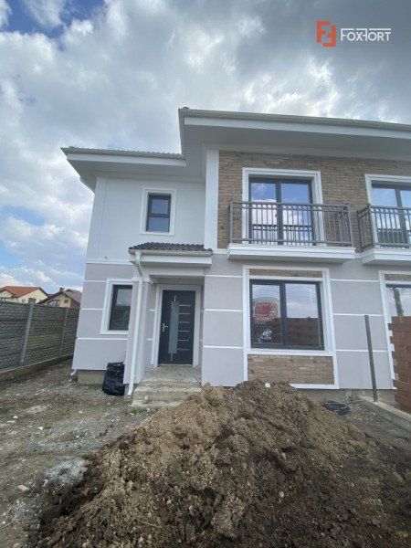 FOXFORT Imobiliare propune spre vanzare casa tip duplex, cu un regim de inaltime P+1 E, situata in zona Dumbravita, avand un numar de 5 camere, cu o suprafata utila de 124 mp si teren 314 mp. Casa a fost construita in anul 2020, structura acesteia fiind din beton armat si caramida Porotherm. Imobilul dispune de 2 locuri de parcare in fata proprietatii si este situat in apropiere de statia de transport in comun si magazine.
