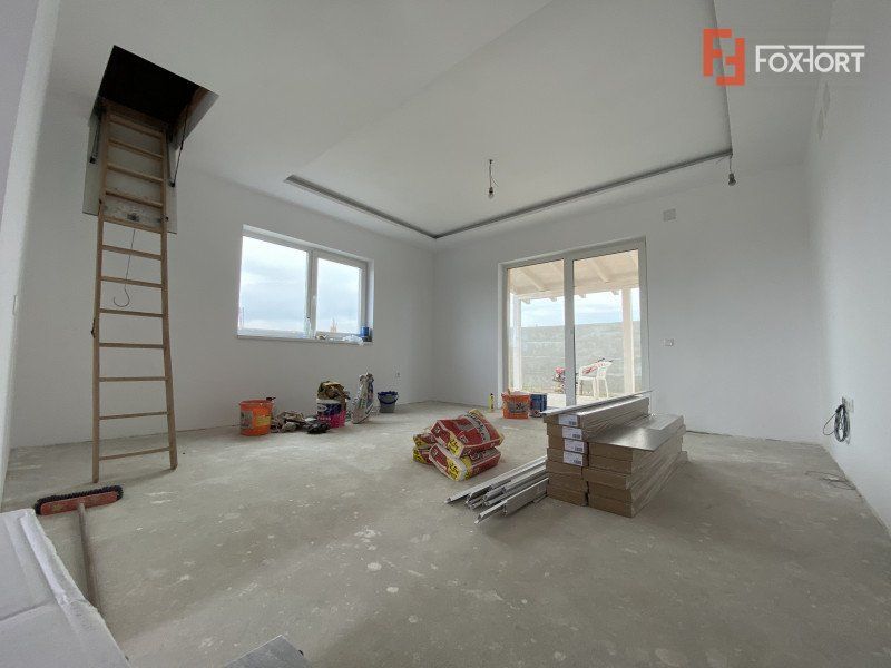 FOXFORT Imobiliare propune spre vânzare casa tip duplex, cu un regim de înălțime parter cu posibilitate amenajare mansardă (80 mp și 2.70 înălțime), în localitatea Moșnița Nouă, având un număr de 3 camere, cu o suprafață utila de 80 mp si teren 410 mp. Casa a fost construita în anul 2021, structura acesteia fiind din beton, pereți din cărămidă. Izolație de 10 cm cu eps 100! Duplexul se desparte printr-o cameră tehnică și baie. Utilități: curent, gaz, internet fribră optică, apă forată (proiectul este în derulare cu finalizare anul acesta), canalizare cu fosă septică.