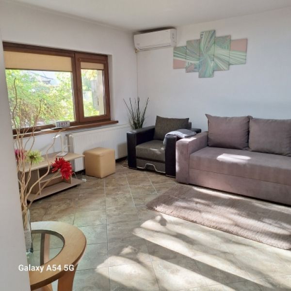 Garsoniera este spatioasa, are AC desi, fiind la parter, nu este foarte cald vara. Canapeaua este recent cumparata, extensibila si foarte comoda. Are si o canapea mica in zona de relaxare/cafea. Bucataria este mare, baia cu dus si geam!