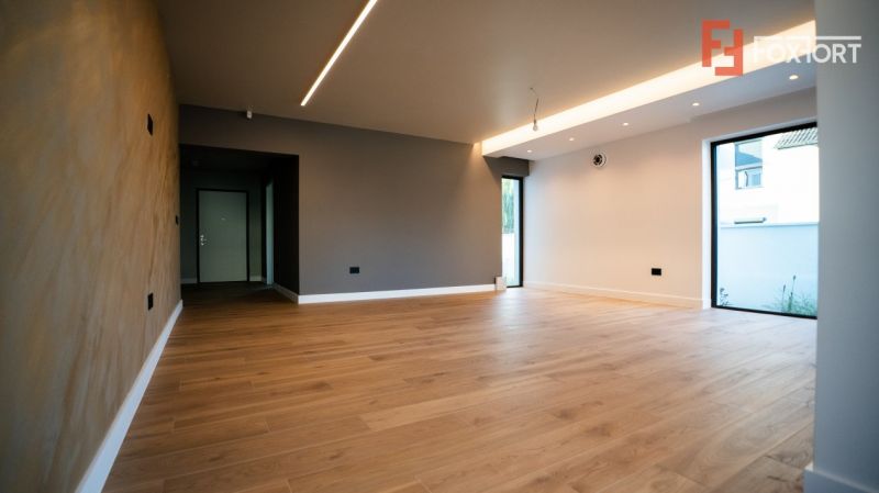 Living de 35 mp, bucatarie de 24 mp, camara de alimente, camera tehnica, 3 dormitoare, 3 bai din care 2 cu dus si una cu cada, dressing in dormitorul matrimonial, o camera de gaming, holuri de acces mari, 3 balcoane si o terasa acoperita in care sa pus corpuri de iluminat, prize.