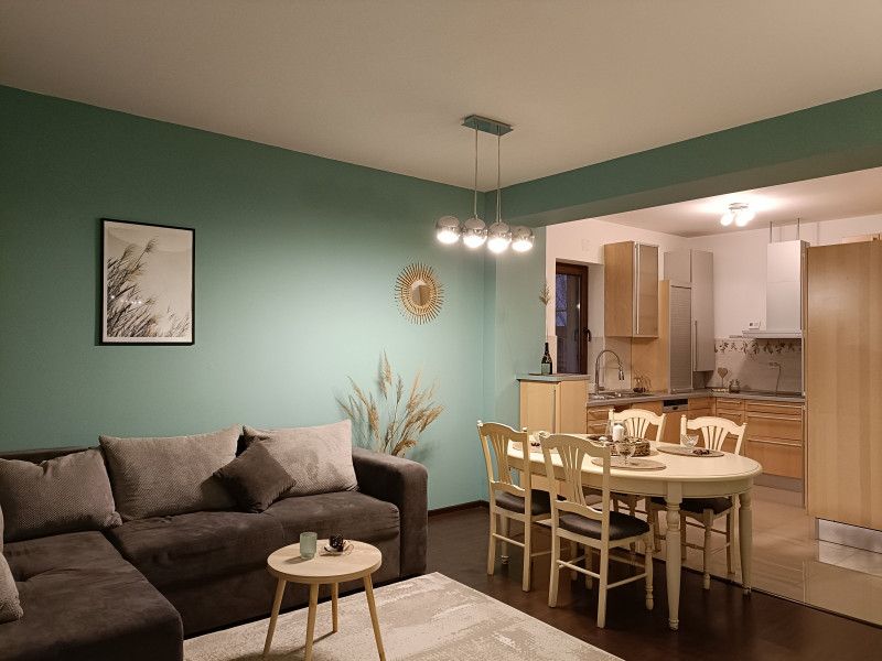 Bucataria este mobilata si utilata cu electrocasnice asa ca nu ramane decat sa va disputati postul de chef in bucatarie :) si, indiferent cine castiga, diningul primitor ofera spatiul ideal pentru ca toata familia sa se bucure de delicioasele bucate gatite.