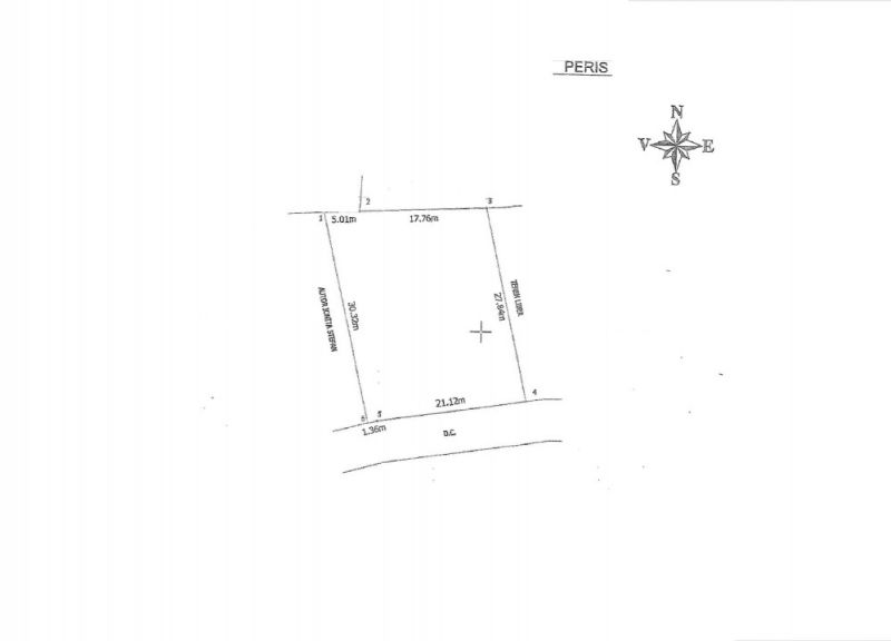 Teren situat in intravilanul comunei Peris, in apropierea padurii Scrovistea si a strazii Padurii, in suprafata de 650 mp, cu o deschidere pe latura de sud de 21.12 ml la drum comunal.