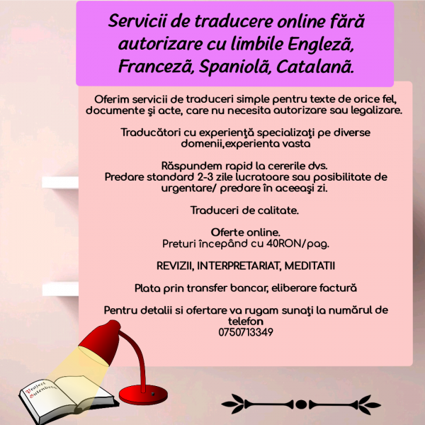 Servicii de traducere online fără autorizare in și din limba română cu limbile Engleză, Franceză, Spaniolă, Catalană