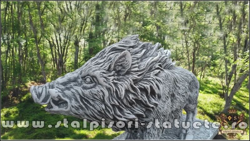 Statuetă porc mistreț, gri patinat, model S81.