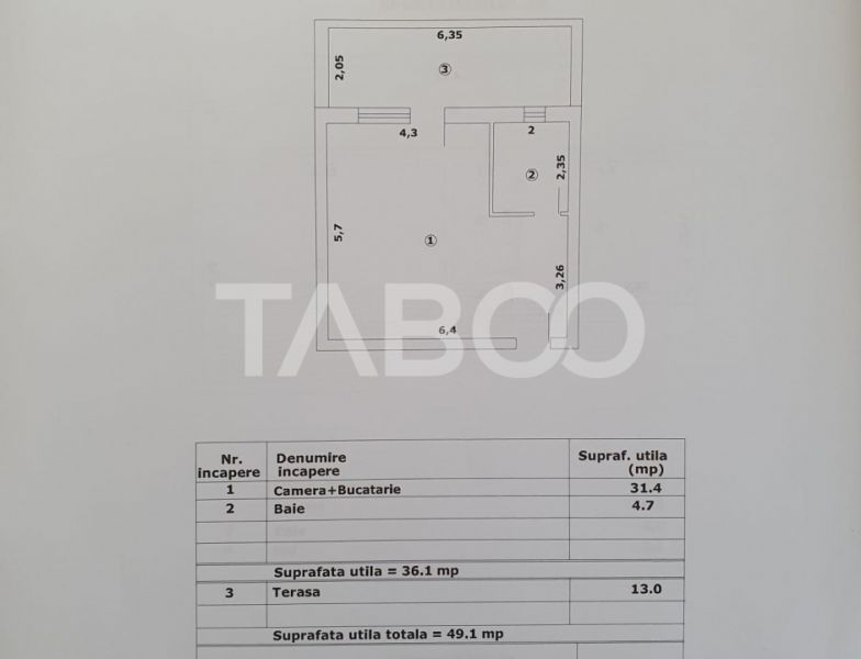Suprafata utila de 36 mp + terasa de 13 mp.