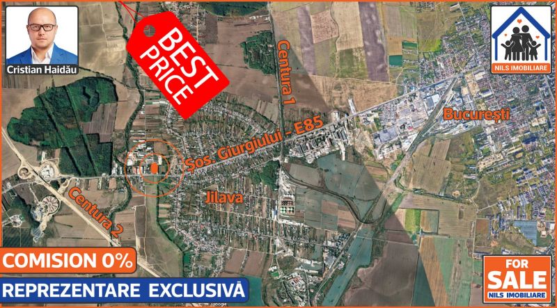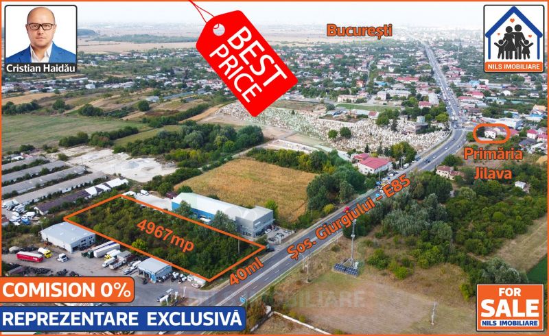 Teren intravilan in Jilava Ilfov, de 4967mp si cu dubla deschidere de cate 40ml. In fata fix la Soseaua Giurgiului - E85 si in spate la un drum paralel cu Sos Giurgiului. /