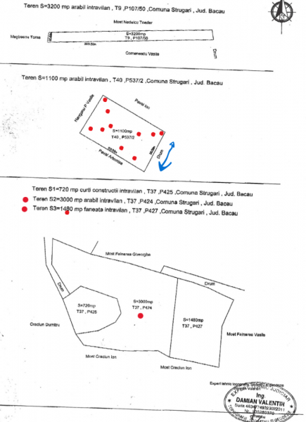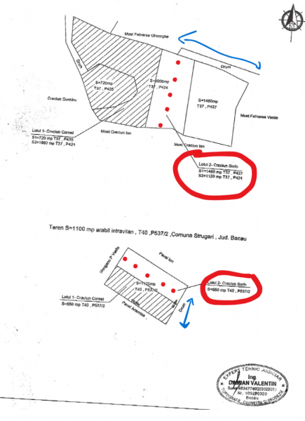Se vinde : suprafeța totale de 3250 mp teren situat în intravilanul comunei Strugari, județul Bacău, compusă din: