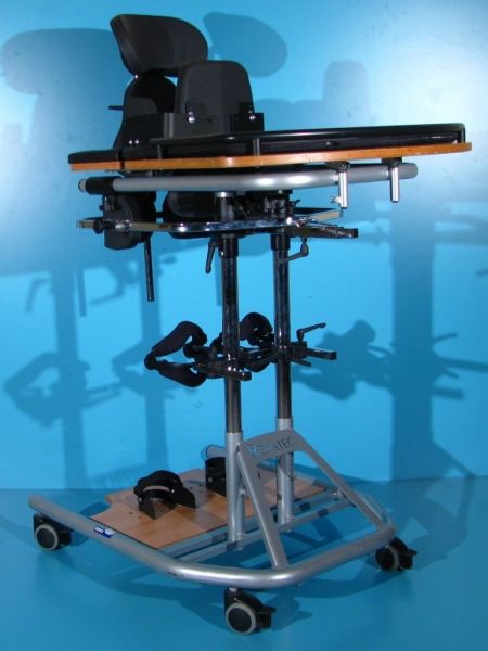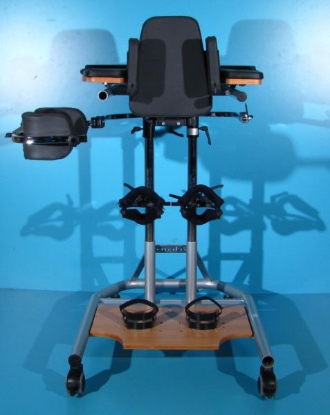 Verticalizatorul activ ofera utilizatorului reglaj pe inaltime pentru o pentru o pozitionare corecta in el datorita suportilor pentru zona lombara si respectiv a genunchilor.